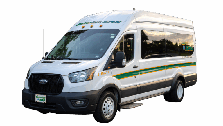 Suburban EMS is proud to be the leading provider in the region offering a full range of medical transportation services — ambulances, stretcher vans, medical sedans, and wheelchair vans — ensuring safe, comfortable, and dignified transport for every need.